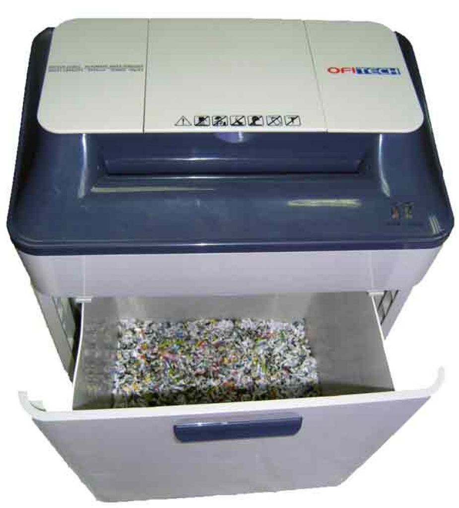 - Unidad de corte hecha de acero templado puede destruir clips y grapas.